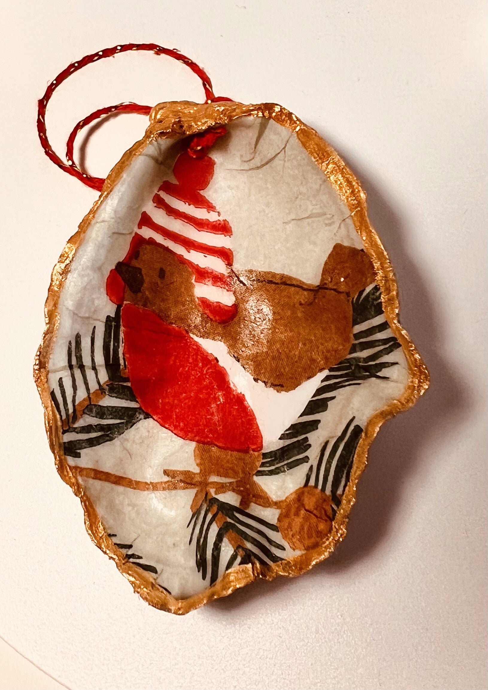 Kerst Oesterschelp Vogeltje rood/goud