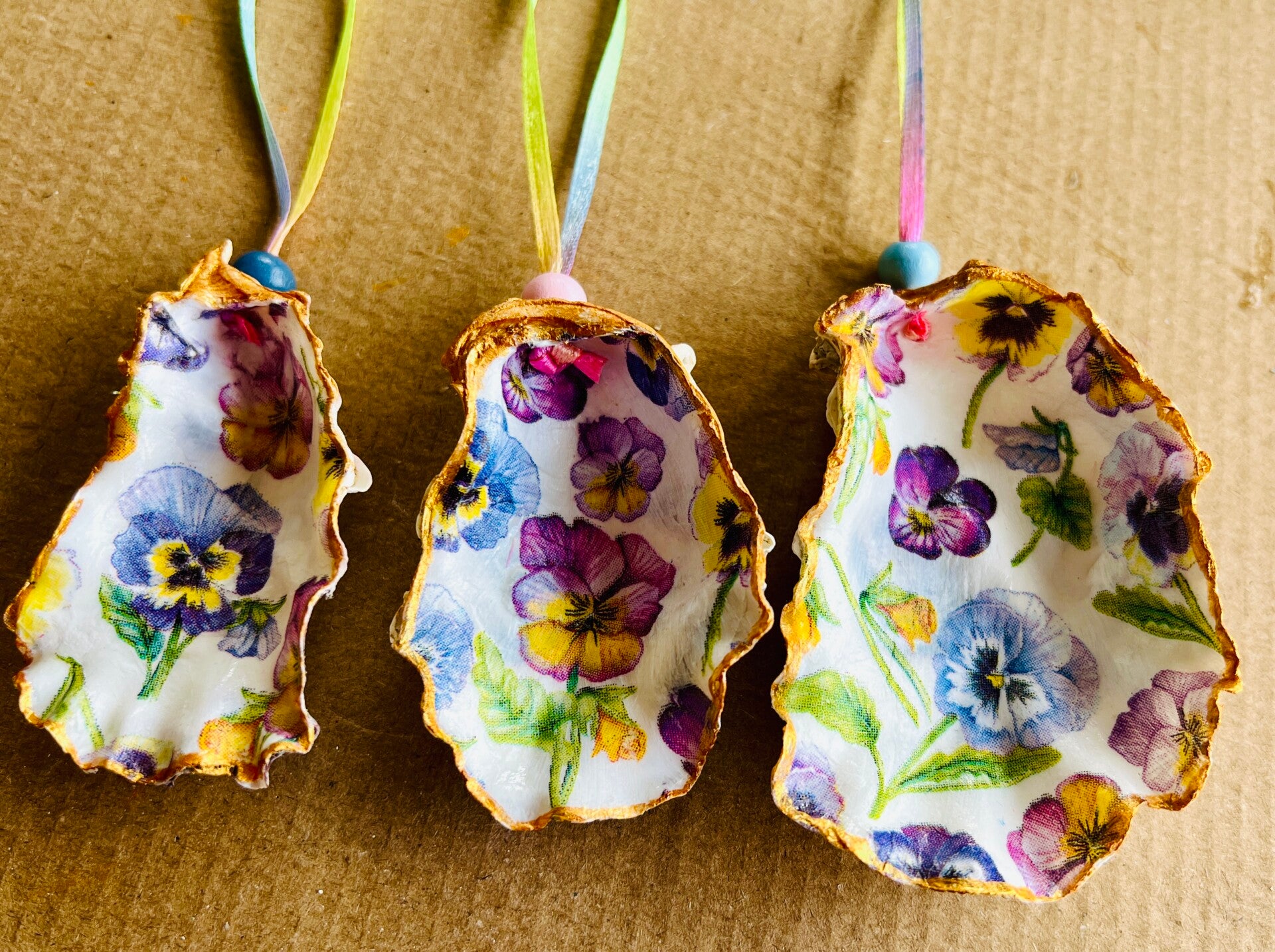 3 Viooljes oesterschelpen voor in de paastak. 3 formaten: maxi,midi, mini. Ook afzonderlijk te koop. Maxi: €12,50 Midi: €10,00 Mini: €7,50. 2 schelpen voor €20,00, Alle 3 samen €25,00